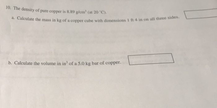 Solved 10 The Density Of Pure Copper Is 8 89 Gem At Chegg Com
